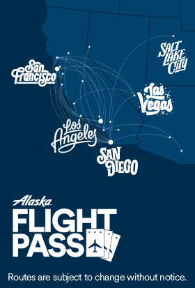 All flights offered by Alaska Airlines within California, Nevada, Arizona, and Utah are accessible with Flight Pass.